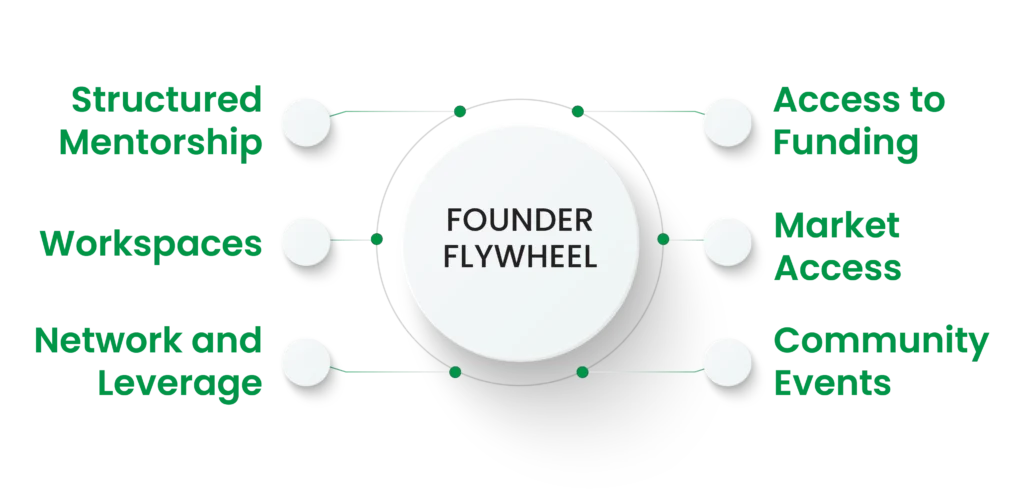 The Founder Flywheel: Our methodology integrates six critical elements that founders most need.
