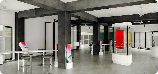 A versatile display space for partners, startups, and innovators to launch products, exhibit ideas, and engage diverse audiences.